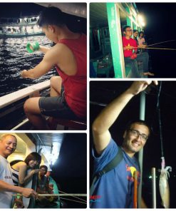 2. – Trong khi thuyền đang chạy, quý khách sẽ được ngắm mặt trời lặn. Khi đến khu vực câu mực, đèn sẽ được bật sáng, quý khách nhận dụng cụ câu mực. Hướng dẫn viên sẽ hướng dẫn cho quý khách cách câu mực đêm và sau đấy là màn trổ tài của các bạn để bắt được những con mực to nhất và được cảm nhận lý thú tiêu khiển khi tự tay mình câu được.